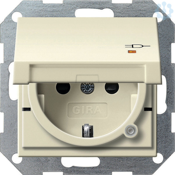 SCHUKO-Steckdose 16 A 250 V~ mit Klappdeckel, Kontrolllicht und Shutter System 55 Cremeweiß glänzend Hinweise : Erhöhter Berührungsschutz (Safety Plus) gemäß DIN VDE 0620-1.