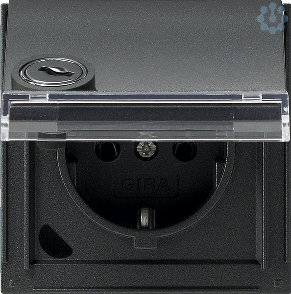 SCHUKO-Steckdose 16 A 250 V~ mit Klappdeckel, Schloss und Beschriftungsfeld mit gleichen Schließungen Anthrazit