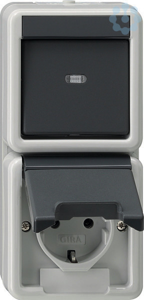 Schuko-Steckdose/Wechselschalter WG-AP grau senkrecht IP44