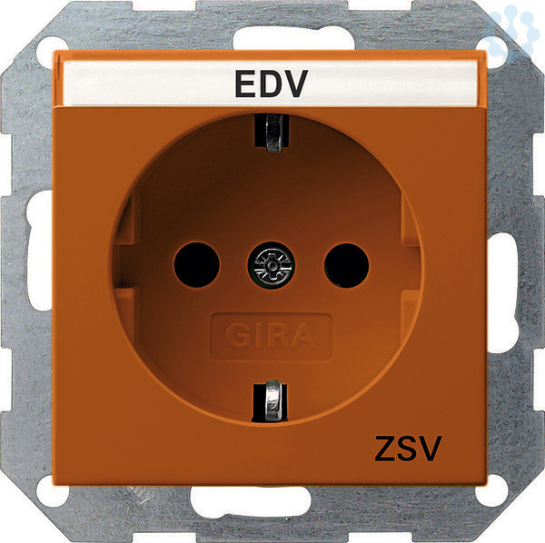 SCHUKO-Steckdose 16 A 250 V~ mit Beschriftungsfeld mit oranger Abdeckung und Aufdruck "ZSV" (zusätzliche Sicherheitsversorgung) Orange glänzend Hinweise : Die Sockel der SCHUKO-Steckdosen sind farblich entsprechend gekennzeichnet.