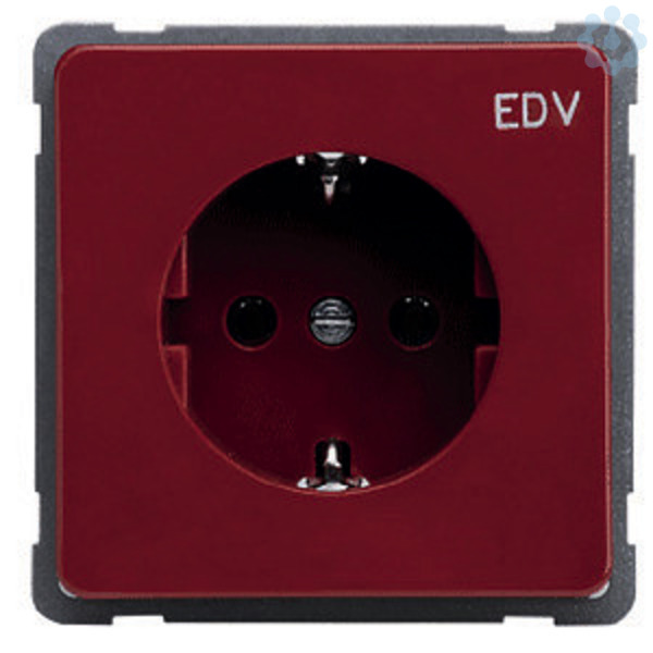 Steckdoseneinsatz mit Aufdruck EDV, Farbe: rot Schutzkontakt-Steckdosen 16 A 250V AC Steckdosen mit Steckklemme sind mit Überspannungsschutzmodul als Gerätefeinschutz nachrüstbar. für Unterputzmontage, Schutzart IP 20, Schraubklemmen Klemmbereich für Kupferleiter 1,5 mm² und 2,5 mm², für den sicheren Anschluss von Aluminiumleitern 2,5 mm² ohne Vorbehandlung.