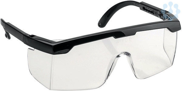 Schutzbrille Standard Frame, schwarze Fassung, klare Sichtscheibe, kratzfest, EN 166 1 F