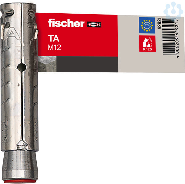 Der fischer Schwerlastanker TA M ist ein Innengewindeanker aus galvanisch verzinktem Stahl für die Vorsteckmontage. Bei der Montage wird der Konus in die Spreizhülse gezogen und verspannt diese gegen die Bohrlochwand. Die Kunststoffkappe schützt das Gewinde vor Verschmutzung. Dieses bleibt dadurch gängig. Der Schwerlastanker ist ideal für die Befestigung von Absturzsicherungen, Anlagen und Maschinen in ungerissenem Beton.
