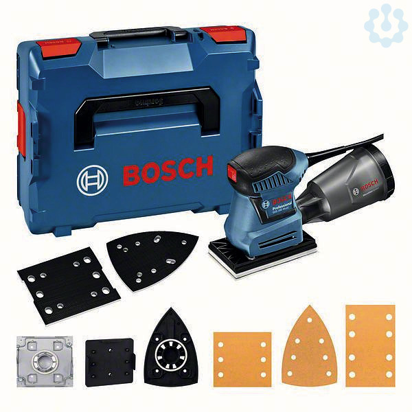Schwingschleifer GSS 160 Multi, L-BOXX 136 (1 600 A01 2G0); L-BOXX-Einlage; Lochwerkzeug (2 608 190 059); Schraubendreher; Staubbox (2 605 411 240) inkl. Microfilter (2 605 411 241); 1 x Schleifblatt C470, Best for Wood + Paint, 120 (separat erhältlich als 10er-Pack: 2 608 607 232); 1 x Schleifblatt C470, Best for Wood + Paint, 120 (separat erhältlich als 10er-Pack: 2 608 607 458); 1 x Schleifblatt C470, Best for Wood + Paint, 120 (separat erhältlich als 10er-Pack: 2 608 608 Z96); (Delta) Grundplatte, 100 x 150 mm (2 608 601 448) mit Schleifplatte (2 608 601 445); Grundplatte, 113 x 101 mm (2 608 601 446) mit Schleifplatte (2 608 601 443); Grundplatte, 80 x 130 mm (2 608 601 447) mit Schleifplatte (2 608 601 444)