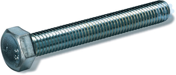 Maschinen-Sechskantschrauben nach DIN 933, mit Gewinde bis zum Kopf, Stahl vergütet, galvanisch verzinkt; Güte 8,8. Ausführung: Ø : M10 mm; Länge: 50 mm; SW 17; VE: 50.