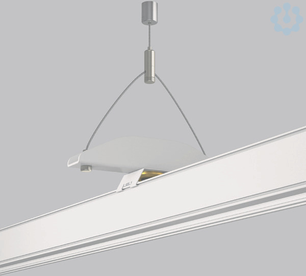 für Serie: 3-Phasen-Stromschienen Typ: Abhängung Seil Sichtfarbe: weiß Montageart: Pendel L: 120mm B: 19mm H: 23, 50mm LP: 230, 5000mm