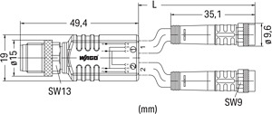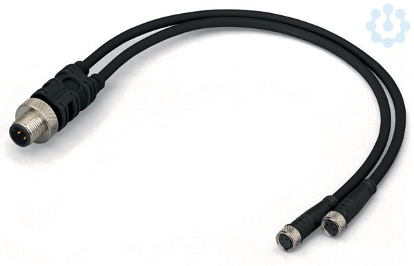 Sensor-/Aktor-Verteilerkabel 1m 2xM8 Buchse/M12 Stecker axial 4pol.