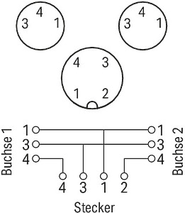 Sensor-/Aktorleitung; 2xM8-Buchse; axial; M12A-Stecker; axial; 4-polig; Länge 1 m