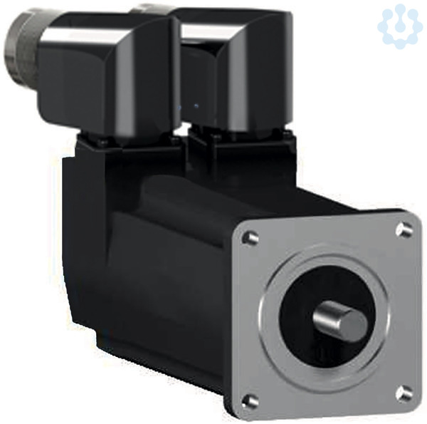 Lexium SH3 Servomotor. Diese SH3-Reihe an AC-Servomotoren weist ein geringes Rotorträgheitmoment auf, das eine hohe Beschleunigungsfähigkeit für dynamische Anwendung ermöglicht. Dank der Wicklungstechnologie ergibt sich eine höhere Leistungsdichte in kompakter Ausführung. Dieser Servo hat ein nominelles Dauerstillstandsmoment von 0,8 Nm und erreicht ein Spitzendrehmoment von 2,5 Nm. Seine Nenndrehzahl beträgt in Abhängigkeit der Versorgungsspannung bis zu 9000 U/min. Es ergibt sich eine spannungsabhängige Nennleistung bis zu 670 W. Der eingebaute Encoder ist als Singelturn mit 128 Perioden/Umdrehung (128x1024) als SinCos Hiperface ausgeführt. Der elektrische Anschluss erfolgt über Steckverbinder 2x M23, um 90° gewinkelt und drehbar. Zur Befestigung beträgt der Motorflansch 55 mm. Die Antriebswelle hat einen Durchmesser von 9 mm. Das Wellenende ist mit Passfeder und entspricht der Schutzart IP54 ausgeführt. Das Motorgehäuse entspricht der Schutzart IP65. Eine Haltebremse ist integriert. Für den Betrieb des Synchronmotors empfehlen sich die Servoverstärker der Lexium-Reihe Lexium 52 & Lexium 62.