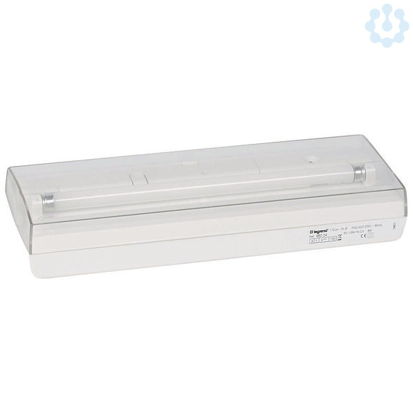 Sicherheitsleuchte mit Dauerschaltung 110lm, Ni-Cd-Akkus. Versorgung: 230 V ± 10 %, 50/60 Hz, 2 x 2,5 mm² Klemmen, IP42, Klasse II.