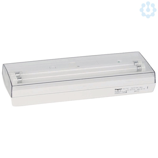 Sicherheitsleuchte mit Bereitschaftsleuchte, Bereitschafts- oder Dauerschaltung. 230 V ± 10 %, 50/60 Hz, IP42, Klasse II.