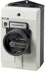 Sicherungslasttrennschalter SUVA, Sortiment: Sicherheitsschalter SUVA, Typkenner: T3, STOPP-Funktion: HALT-Funktion, mit schwarzem Drehgriff und Sperrkranz, Hinweis: mit Warnschild „Interrupteur de sécurité“, Information zum Lieferumfang: Leuchtmelder 230 V, Abschließbarkeit: abschließbar in 0-Stellung mit Deckelverriegelung, Schutzart: IP65, Bauform: Aufbau, Bemessungsbetriebsleistung AC-23A, 50 - 60 Hz 400 V: P = 15 kW, Bemessungsdauerstrom: Iu = 32 A, 2 Baueinheit(en), Normen und Bestimmungen: IEC/EN 60947, VDE 0660, IEC/EN 60204, Lasttrennschalter nach IEC/EN 60947-3
