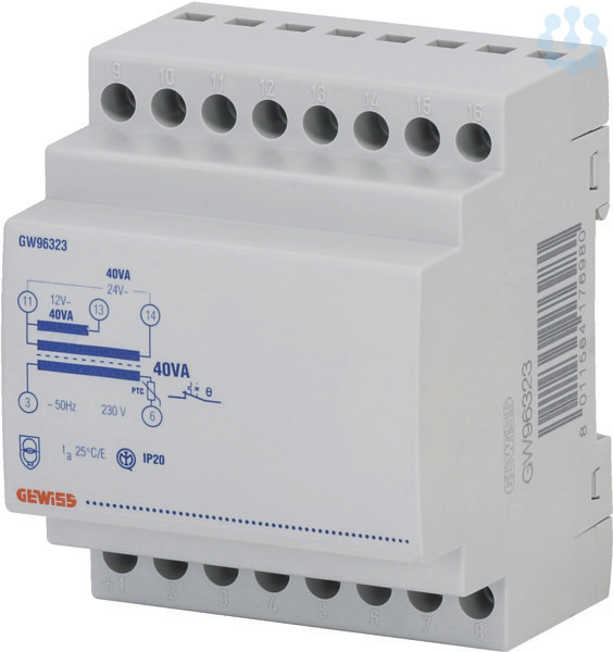 Sicherheitstransformator 40VA TE4 Primär=230V Sekundär=12+12=24V