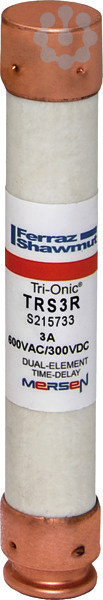 Tri-Onic TR- und TRS-Strombegrenzungs-Zeitverzögerungssicherungen sind für den Überstromschutz von Motoren und Transformatoren, Serviceeingangsgeräten, Einspeise- und Verteilerstromkreisen ausgelegt. Die bewährte Zeitverzögerungskennlinie der Tri-Onic-Sicherung geht mit den Anlauf- und Einschaltströmen der heute üblichen Motoren und Transformatoren sicher um. Das Produkt-Design verhindert Austauschfehler (bei Verwendung mit empfohlenen Sockeln). Der Fiberglas-Körper bietet Dimensionsstabilität in rauen industriellen Umgebungen.