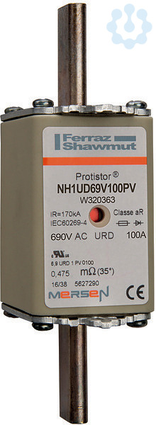 Mersen Protistor Sicherungseinsätze 690/700V für den Halbleiterschutz berücksichtigen ein breites Maß an Flexibilität bei der Anwendung zum Schutz von modernen Stromrichtergeräten. Es handelt sich um eine superflinke Reihe, die in ihrer Gesamtheit befähigt ist, Leistungshalbleiter wie z.B. Dioden, Thyristoren, GTO's und IGBT Bauelemente zu schützen. Die Sicherungseinsätze in NH Bauweise entsprechen den Bestimmungen nach DIN 43620 und sind demnach weltweit anerkannt für den Einsatz in NH Sicherungsunterteilen, NH Sicherungsleisten und NH Sicherungslasttrennschaltern. Sicherungseinsätze in verschiedenen Baugrößen und zahlreichen Nennströmen ermöglichen eine weitestgehende Geräteanpassung. Die Sicherungen enthalten, in Sand fest eingebettet, Schmelzleiter aus reinem Silber, um sehr gute Gesamtabschaltintegrale (I2t) und hohe Schaltvermögen zu gewährleisten. Die Kontaktoberflächen sind versilbert und alle Bauteile nichtmagnetisch. Es gibt bei allen Sicherungen dieser Reihe einen Funktionsmelder, der neben seiner visuellen Anzeigefunktion auch dazu benutzt werden kann, mittels eines zusätzlichen Mikroschalters die Sicherungsfunktion fern zu melden.