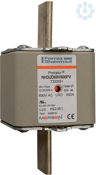 Mersen Protistor Sicherungseinsätze 690/700V für den Halbleiterschutz berücksichtigen ein breites Maß an Flexibilität bei der Anwendung zum Schutz von modernen Stromrichtergeräten. Es handelt sich um eine superflinke Reihe, die in ihrer Gesamtheit befähigt ist, Leistungshalbleiter wie z.B. Dioden, Thyristoren, GTO's und IGBT Bauelemente zu schützen. Die Sicherungseinsätze in NH Bauweise entsprechen den Bestimmungen nach DIN 43620 und sind demnach weltweit anerkannt für den Einsatz in NH Sicherungsunterteilen, NH Sicherungsleisten und NH Sicherungslasttrennschaltern. Sicherungseinsätze in verschiedenen Baugrößen und zahlreichen Nennströmen ermöglichen eine weitestgehende Geräteanpassung. Die Sicherungen enthalten, in Sand fest eingebettet, Schmelzleiter aus reinem Silber, um sehr gute Gesamtabschaltintegrale (I2t) und hohe Schaltvermögen zu gewährleisten. Die Kontaktoberflächen sind versilbert und alle Bauteile nichtmagnetisch. Es gibt bei allen Sicherungen dieser Reihe einen Funktionsmelder, der neben seiner visuellen Anzeigefunktion auch dazu benutzt werden kann, mittels eines zusätzlichen Mikroschalters die Sicherungsfunktion fern zu melden.