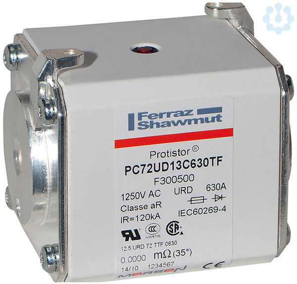 Mersen Protistor Sicherungseinsätze 1250/1300V für den Halbleiterschutz berücksichtigen ein breites Maß an Flexibilität bei der Anwendung zum Schutz von modernen Stromrichtergeräten. Es handelt sich um eine superflinke Reihe, die in ihrer Gesamtheit befähigt ist, Leistungshalbleiter wie z.B. Dioden, Thyristoren, GTO's und IGBT Bauelemente zu schützen. Protistor Sicherungseinsätze in verschiedenen Baugrößen und zahlreichen Nennströmen ermöglichen eine weitestgehende Geräteanpassung. Die Sicherungen enthalten, in Sand fest eingebettet, Schmelzleiter, um sehr gute Gesamtabschaltintegrale (I2t) und hohe Schaltvermögen zu gewährleisten. Die Kontaktoberflächen sind versilbert und alle Bauteile nichtmagnetisch. Es gibt bei allen Sicherungen dieser Reihe einen Funktionsmelder, der neben seiner visuellen Anzeigefunktion auch dazu benutzt werden kann, mittels eines zusätzlichen Mikroschalters die Sicherungsfunktion fern zu melden.