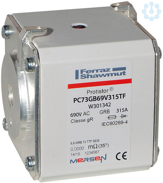 Mersen Protistor Sicherungseinsätze 690V für den Halbleiterschutz berücksichtigen ein breites Maß an Flexibilität bei der Anwendung zum Schutz von modernen Stromrichtergeräten. Protistor Sicherungseinsätze in verschiedenen Baugrößen und zahlreichen Nennströmen ermöglichen eine weitestgehende Geräteanpassung. Protistor Sicherungseinsätze der Betriebsklasse gR wurden entwickelt um eine Absicherung des gesamten Spannungsspektrums zu ermöglichen, Überlasten zu unterdrücken und Kurzschlussfehler zu verhindern. Die Sicherungen enthalten, in Sand fest eingebettet, Schmelzleiter aus reinem Silber, um sehr gute Gesamtabschaltintegrale (I2t) und hohe Schaltvermögen zu gewährleisten. Die Kontaktoberflächen sind versilbert und alle Bauteile nichtmagnetisch. Es gibt bei allen Sicherungen dieser Reihe einen Funktionsmelder, der neben seiner visuellen Anzeigefunktion auch dazu benutzt werden kann, mittels eines zusätzlichen Mikroschalters die Sicherungsfunktion fern zu melden.