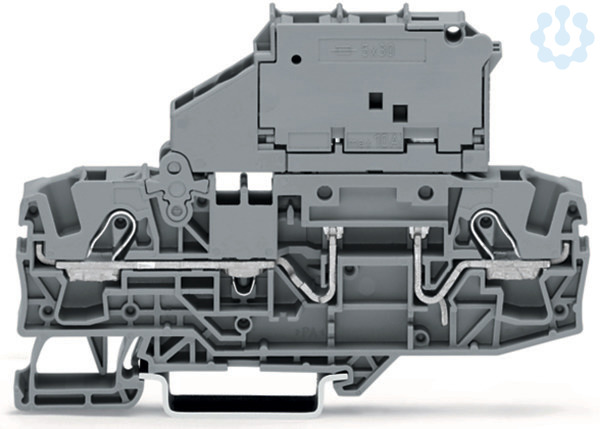 2-Leiter-Sicherungsklemme; mit schwenkbarem Sicherungshalter; für G-Sicherungseinsatz 5 x 30 mm; ohne Defektanzeige; für Tragschiene 35 x 15 und 35 x 7,5; 6 mm²; Push-in CAGE CLAMP®; 6,00 mm²; grau