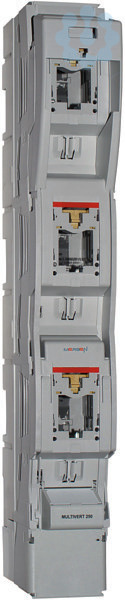 MULTIVERT NH-Sicherungs-Lastschaltleisten erfüllen sämtliche Funktionen eines NH-Sicherungs-Lasttrennschalters. Die Konstruktion ist für die Direktmontage auf Sammelschienen in dreipoliger Anordnung ausgelegt. MULTIVERT 250A Schaltleisten können auf 185mm Sammelschienen-Systemen direkt montiert werden. MULTIVERT 250A Schaltleisten sind für NH-Sicherungs-Einsätze nach IEC/EN 60269-2, VDE 0636-2, Größe 1, 250A entwickelt. Das System ist ein Modulsystem, in dem die verschiedenen Produkte optimal kombiniert werden können. MULTIVERT ermöglichen dem Anwender eine rasche und einfache Installationsmöglichkeit sowie hohe Sicherheit bei der Installation und Wartung. Alle MULTIVERT sind in geschlossenem Zustand mit Vorhängeschloss versperrbar oder plombierbar. Diese Ausführung wird mit 3 Bolzen M10 und mit integriertem Stromwandler 100/5A, 2VA, Klasse 1, für 3-polige Messung mit vorverkabelten Messleitungen ausgeliefert.