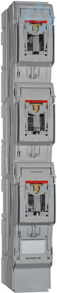 MULTIVERT NH-Sicherungs-Lastschaltleisten erfüllen sämtliche Funktionen eines NH-Sicherungs-Lasttrennschalters. Die Konstruktion ist für die Direktmontage auf Sammelschienen in dreipoliger Anordnung ausgelegt. MULTIVERT 250A Schaltleisten können auf 185mm Sammelschienen-Systemen direkt montiert werden. MULTIVERT 250A Schaltleisten sind für NH-Sicherungs-Einsätze nach IEC/EN 60269-2, VDE 0636-2, Größe 1, 250A entwickelt. Das System ist ein Modulsystem, in dem die verschiedenen Produkte optimal kombiniert werden können. MULTIVERT ermöglichen dem Anwender eine rasche und einfache Installationsmöglichkeit sowie hohe Sicherheit bei der Installation und Wartung. Alle MULTIVERT sind in geschlossenem Zustand mit Vorhängeschloss versperrbar oder plombierbar. Diese Ausführung wird mit 3 Bolzen M10 und mit integriertem Stromwandler 250/5A, 3,5VA, Klasse 1, für 3-polige Messung mit vorverkabelten Messleitungen ausgeliefert.