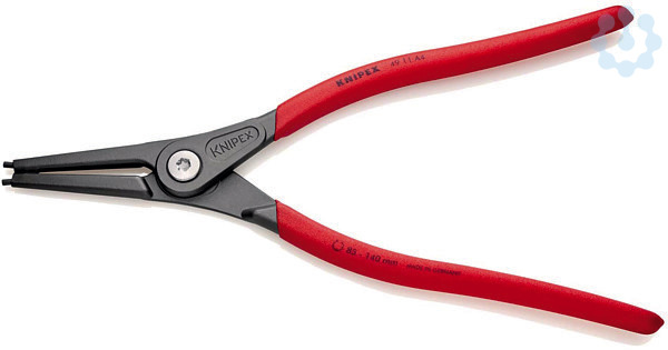 49 11 A4 Präzisions-Sicherungsringzange hoch belastbar im Dauereinsatz: bis zu 10-fach höhere Standzeit gegenüber angedrehten Spitzen. Mit eingesetzten Spitzen für sicheres Arbeiten. Große Auflageflächen an den Spitzen: keine Verwindung der Ringe, leichte Montage. Geschraubtes Gelenk: präziser, spielfreier Gang der Zange. Im Gelenk liegende Öffnungsfeder, geschützt und unverlierbar. Rutschhemmender Kunststoffüberzug an den Griffen. gerade Spitzen. SB-Karte/Blister. - Kapazität für Wellendurchmesser: Ø 85 – 140mm - Spitzen (Durchmesser): 3,2mm