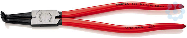 44 21 J41 Sicherungsringzange Kräftige Form, geschmiedet. Abrutschhemmende, stabile Spitzen. DIN 5256 D; 90° gewinkelte Spitzen. - Kapazität für Bohrungsdurchmesser: Ø 85 – 140mm - Spitzen (Durchmesser): Ø 3,2mm