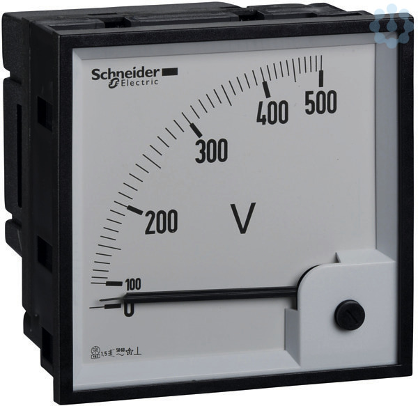 Analoge Amperemeter AMP und Voltmeter VLT für Fronteinbau, 96 x 96 mm. 1,3 x In Skala. Anschluss über Stromwandler TI 3000/5, Messbereich 0-3000 A.