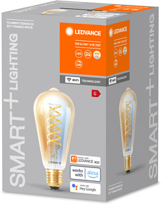 SMART+ Glaslampen in klassicher Form mit WiFi Technologie. Produkteigenschaften: Steuerbar über LEDVANCE SMART+ WiFi App (mit mindestens Android™️ 4.4 oder iOS 9.0). Steuerung über Google Assistant oder Amazon Alexa möglich. Netzwerkprotokoll: WiFi. Lichtfarbe über Tunable White einstellbar: Warm Comfort weiß bis Kaltweiß (2.200 K … 5.000 K). Dimmbar. Lebensdauer: bis zu 15.000 h. Produktvorteile: Drahtlose Steuerung über App. Einfache Installation und Nutzung. Enthält kein Quecksilber. Anwendungsgebiete: Allgemeinbeleuchtung. Wohnräume. Gewerbe (Hotels, Bars, Boutiquen usw.). Außenanwendungen nur in geeigneten Leuchten.