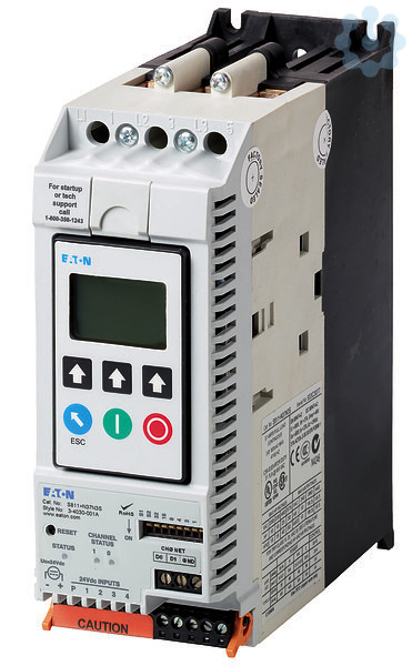 Softstarter, Beschreibung: mit internen Bypass-Kontakten, Funktion: Softstarter für dreiphasige Lasten mit Bedieneinheit, Netzanschlussspannung (50/60 Hz): ULN= 200 - 600 V AC, Versorgungsspannung: Us= 24 V DC, Steuerspannung: UC= 24 V DC, zugeordnete Motorleistung (Standardanschluss, In-Line) bei 400 V, 50 Hz: P= 30 kW, bei 460 V, 60 Hz: P= 50 HP, Bemessungsbetriebsstrom AC-53: Ie= 66 A, Bemessungsbetriebsstrom AC-53, In-Delta: Ie= 114 A, Anlaufklasse: CLASS 10 (Stern-Dreieck-Ersatz), CLASS 20 (Schweranlauf, 3 x Ie für 45 s), CLASS 30 (6 x Ie für 30 s), Bemessungsbetriebsspannung: Ue= 200 V, 230 V, 400 V, 480 V, 600 V, Anbindung an SmartWire-DT: nein, Baugröße: N, Normen und Bestimmungen: IEC/EN 60947-4-2, UL 508, CSA22.2-14-1995, GB14048