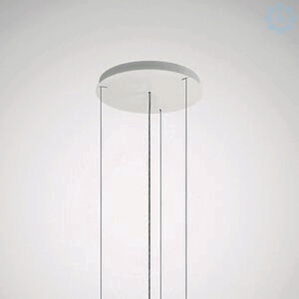 Pendelset für abgehängte Montage Für schaltbare Leuchten. (3 x 0,75 mm2). Für Abhängelängen bis 1500 mm. Bestehend aus einem weißen Deckenbaldachin, einer transparenten Netzzuleitung sowie einer 3-Punkt Seilabhängung mit Befestigungsstücken, (RAL 9016).