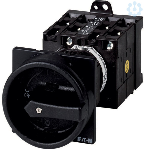 Sonderschalter, Sortiment: Sonderschalter, Typkenner: T3, STOPP-Funktion: HALT-Funktion, mit schwarzem Drehgriff und Sperrkranz, Hinweise: Kundenspezifische Ausführung gemäß Formblatt, Schutzart: Front IP65, Bauform: Zwischenbau, Bemessungsbetriebsleistung AC-23A, 50 - 60 Hz 400 V: P = 15 kW, Bemessungsdauerstrom: Iu = 32 A, 1 Baueinheit(en), Normen und Bestimmungen: IEC/EN 60947, VDE 0660, IEC/EN 60204, Lasttrennschalter nach IEC/EN 60947-3