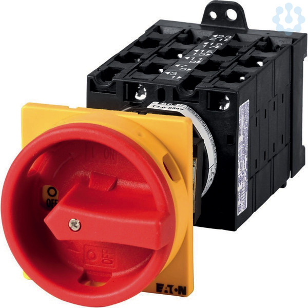Sonderschalter, Sortiment: Sonderschalter, Typkenner: T3, STOPP-Funktion: NOT-AUS-Funktion, mit rotem Drehgriff und gelbem Sperrkranz, Hinweise: Kundenspezifische Ausführung gemäß Formblatt, Schutzart: Front IP65, Bauform: Zwischenbau, Bemessungsbetriebsleistung AC-23A, 50 - 60 Hz 400 V: P = 15 kW, Bemessungsdauerstrom: Iu = 32 A, 6 Baueinheit(en), Normen und Bestimmungen: IEC/EN 60947, VDE 0660, IEC/EN 60204, Lasttrennschalter nach IEC/EN 60947-3