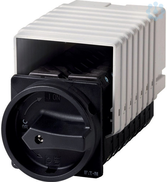 Sonderschalter, Sortiment: Sonderschalter, Typkenner: T5, STOPP-Funktion: HALT-Funktion, mit schwarzem Drehgriff und Sperrkranz, Hinweise: Kundenspezifische Ausführung gemäß Formblatt, Schutzart: Front IP65, Bauform: Einbau, Bemessungsbetriebsleistung AC-23A, 50 - 60 Hz 400 V: P = 55 kW, Bemessungsdauerstrom: Iu = 100 A, 8 Baueinheit(en), Normen und Bestimmungen: IEC/EN 60947, VDE 0660, IEC/EN 60204, Lasttrennschalter nach IEC/EN 60947-3