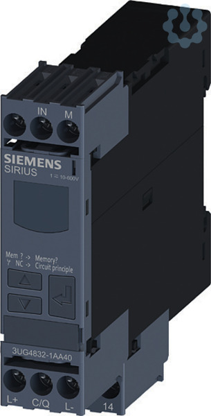 Digitales Überwachungsrelais Spannungsüberwachung, 22.5 mm für IO-Link AC/DC 10...600 V Über-und Unterspannung Hysterese 0.1 bis 300 V Anlaufverzögerungszeit Auslöseverzögerungszeit 1 Wechsler, Schraubanschluss Digital einstellbares Spannungsüberwachungsrelais SIRIUS 3UG4 für die Überwachung von Spannungen auf Über- und Unterschreitung, z.B. zum Schutz einer Anlage vor Beschädigung, zum Schutz vor Batterietiefentladung oder zum Zuschalten einer Anlage ab einer definierten Spannung.Weltweiter Einsatz durch internationale Zertifikate. Das Relais ist variabel einstellbar auf Über-, Unterschreitung oder Fensterüberwachung. Verzögerungszeiten und RESET-Verhalten sind frei parametrierbar. Weniger Platzbedarf im Schaltschrank dank einer schmalen Baubreite. Verlässliche Diagnose durch Anzeige von IST-Wert und Statusmeldungen. Alle Ausführungen mit abnehmbaren Anschlussklemmen.Neben Schraubanschlusstechnik stehen die Geräte auch durchgängig mit Federzuganschluss für einen schnellen, wartungsfreien und rüttelsicheren Anschluss zur Verfügung. Die Geräte unterscheiden sich in eigenversorgte und fremdversorgte Geräte, wahlweise in Weitspannung bzw. mit IO-Link.Das umfassende Zubehör, wie z.B. Gerätekennzeichnungsschilder,Einstecklaschen und Abdeckkappen ist einheitlich für alle Relais.SIRIUS Relais - ein Programm für alle Fälle.