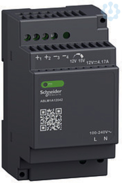 Die getakteten Spannungsversorgungen der Baureihe Modicon ABLM Modular eignen sich ideal für die meisten Anwendungen in der Industrie sowie in Gewerbe- und Wohngebäuden. Die Produktfamilie ABLM besticht durch seine kompakte Bauweise und umfasst dabei Netzteile mit Ausgangsspannungen von 5V DC, 12V DC oder 24V DC. Diese 1-phasige Spannungsversorgung mit einer Nennleistung von 50W verfügt über eine Eingangsspannung von 120-240V AC und eine Ausgangsspannung von 12V DC/4,2A. Dier Eingang befindet sich dabei unten am Gerät und die Ausgänge oben. Die Montage des Kunststoffgehäuses erfolgt wahlweise per Aufrastung auf einer Hutschiene oder Aufschraubung auf einer Montageplatte. Durch einen QR-Code auf dem Gerät ist der Zugang zu weiteren Dokuementationen möglich. Aufgrund der Vielzahl von vorhandenen Produktstandards und Zertifizierungen geeignet für den internationalen Einsatz. Dank des Green Premium Umweltzeichens können Sie detaillierte Informationen zu Materialinhalten, Umweltauswirkungen und Kreislaufwirtschaft erhalten, die Ihre Nachhaltigkeitsziele unterstützen.