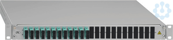Spleissbox, ausziehbar, 19"/1HE, 12xSC-D, OM3, aqua; - pulverbeschichtetes Stahlblechgehäuse; - werkseitige Portkennzeichnung; - mit Gleitauszug, Auszugtiefe ca. 20 cm; - im geöffneten Zustand nach unten neigbar; - mit Rändelschrauben verschließbar; - 40 mm rückversetzbare Box; - Spleisskassette zur Aufnahme von 12 oder 24 Pigtails; - mit max. 4 Spleisskassetten bestückbar (fixiert); - eingelegter Crimpspleisshalter; - spleissfertig vorbereitet mit abgesetzten und eingelegten Pigtails inkl. 12 x SC-D-Keramik-Kupplungen; - SC-Faserpigtails G50/125 µm, 2 m, MM PC, Grade B; - mit Messprotokoll für alle Fasern inkl. Seriennummer; - montierte Blindstopfen bei weniger als 24 Ports; - 4 x rückseitige PG16-Verschraubungen (je 2 x rechts/links); - 1 x PG16-Verschraubung im Lieferumfang; - lichtgrau (ähnlich RAL 7035)