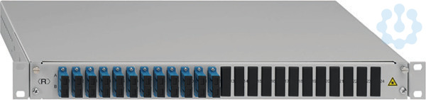 Spleissbox, ausziehbar, 19"/1HE, 12xSC-D, OS2, blau; - pulverbeschichtetes Stahlblechgehäuse; - werkseitige Portkennzeichnung; - mit Gleitauszug, Auszugtiefe ca. 20 cm; - im geöffneten Zustand nach unten neigbar; - mit Rändelschrauben verschließbar; - 40 mm rückversetzbare Box; - Spleisskassette zur Aufnahme von 12 oder 24 Pigtails; - mit max. 4 Spleisskassetten bestückbar (fixiert); - eingelegter Crimpspleisshalter; - spleissfertig vorbereitet mit abgesetzten und eingelegten Pigtails inkl. 12 x SC-D-Keramik-Kupplungen; - SC-Faserpigtails E9/125 µm, 2 m, SM PC, Grade B; - mit Messprotokoll für alle Fasern inkl. Seriennummer; - montierte Blindstopfen bei weniger als 24 Ports; - 4 x rückseitige PG16-Verschraubungen (je 2 x rechts/links); - 1 x PG16-Verschraubung im Lieferumfang; - lichtgrau (ähnlich RAL 7035)