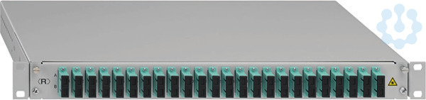 Spleissbox, ausziehbar, 19"/1HE, 24xSC-D, OM3, aqua; - pulverbeschichtetes Stahlblechgehäuse; - werkseitige Portkennzeichnung; - mit Gleitauszug, Auszugtiefe ca. 20 cm; - im geöffneten Zustand nach unten neigbar; - mit Rändelschrauben verschließbar; - 40 mm rückversetzbare Box; - 2 Spleisskassetten zur Aufnahme von 12 oder 24 Pigtails; - mit max. 4 Spleisskassetten bestückbar (fixiert); - eingelegter Crimpspleisshalter; - spleissfertig vorbereitet mit abgesetzten und eingelegten Pigtails inkl. 24 x SC-D-Keramik-Kupplungen; - SC-Faserpigtails G50/125 µm, 2 m, MM PC, Grade B; - mit Messprotokoll für alle Fasern inkl. Seriennummer; - 4 x rückseitige PG16-Verschraubungen (je 2 x rechts/links); - 1 x PG16-Verschraubung im Lieferumfang; - lichtgrau (ähnlich RAL 7035)