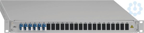 Spleissbox, ausziehbar, 19"/1HE, 6xLC-D, OS2, blau; - pulverbeschichtetes Stahlblechgehäuse; - werkseitige Portkennzeichnung; - mit Gleitauszug, Auszugtiefe ca. 20 cm; - im geöffneten Zustand nach unten neigbar; - mit Rändelschrauben verschließbar; - 40 mm rückversetzbare Box; - Spleisskassette zur Aufnahme von 12 oder 24 Pigtails; - mit max. 4 Spleisskassetten bestückbar (fixiert); - eingelegter Crimpspleisshalter; - spleissfertig vorbereitet mit abgesetzten und eingelegten Pigtails inkl. 6 x LC-D-Keramik-Kupplungen; - LC-Faserpigtails E9/125 µm, 2 m, SM PC, Grade B; - mit Messprotokoll für alle Fasern inkl. Seriennummer; - montierte Blindstopfen bei weniger als 24 Ports; - 4 x rückseitige PG16-Verschraubungen (je 2 x rechts/links); - 1 x PG16-Verschraubung im Lieferumfang; - lichtgrau (ähnlich RAL 7035)