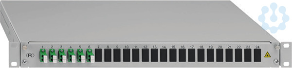 Spleissbox, ausziehbar, 19"/1HE, 6xLC-D OS2 APC grün; - pulverbeschichtetes Stahlblechgehäuse; - werkseitige Portkennzeichnung; - mit Gleitauszug, Auszugtiefe ca. 20 cm; - im geöffneten Zustand nach unten neigbar; - mit Rändelschrauben verschließbar; - 40 mm rückversetzbare Box; - Spleisskassette zur Aufnahme von 12 oder 24 Pigtails; - mit max. 4 Spleisskassetten bestückbar (fixiert); - eingelegter Crimpspleisshalter; - spleissfertig vorbereitet mit abgesetzten und eingelegten Pigtails inkl. 6 x LC-D-Keramik-Kupplungen; - LC-Faserpigtails E9/125 µm, 2 m, SM APC, Grade B; - mit Messprotokoll für alle Fasern inkl. Seriennummer; - montierte Blindstopfen bei weniger als 24 Ports; - 4 x rückseitige PG16-Verschraubungen (je 2 x rechts/links); - 1 x PG16-Verschraubung im Lieferumfang; - lichtgrau (ähnlich RAL 7035)