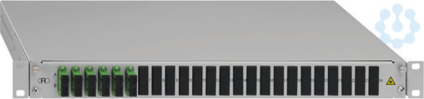 Spleissbox, ausziehbar, 19"/1HE, 6xSC-D OS2 APC grün; - pulverbeschichtetes Stahlblechgehäuse; - werkseitige Portkennzeichnung; - mit Gleitauszug, Auszugtiefe ca. 20 cm; - im geöffneten Zustand nach unten neigbar; - mit Rändelschrauben verschließbar; - 40 mm rückversetzbare Box; - Spleisskassette zur Aufnahme von 12 oder 24 Pigtails; - mit max. 4 Spleisskassetten bestückbar (fixiert); - eingelegter Crimpspleisshalter; - spleissfertig vorbereitet mit abgesetzten und eingelegten Pigtails inkl. 6 x SC-D-Keramik-Kupplungen; - SC-Faserpigtails E9/125 µm, 2 m, SM APC, Grade B; - mit Messprotokoll für alle Fasern inkl. Seriennummer; - montierte Blindstopfen bei weniger als 24 Ports; - 4 x rückseitige PG16-Verschraubungen (je 2 x rechts/links); - 1 x PG16-Verschraubung im Lieferumfang; - lichtgrau (ähnlich RAL 7035)