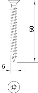 Sprint-Schraube 5x50mm gehärtet, m. Senkkopf u. Kreuzschl.