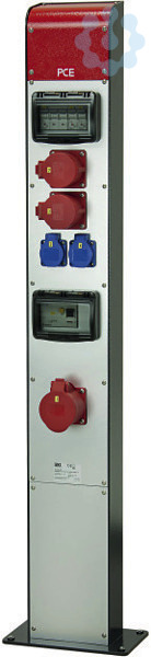 1xStahlsäule 1200x165x85mm (HxBxT) RAL 7016 IP44; Frontseite Alubleche Natur eloxiert; Elektrobereich: 2xVollgummiverteiler Modell STEYREGG IP54 430x79x129; 1xM32 Verschraubung unten (Kabeldurchm. 18-25mm PG29) schw.; 1xCEE-Steckdose 32A 5p 400V abgesichert d. Vorsicherung Zuleitung; 2xCEE-Steckdose 16A 5p 400V abgesichert ü. 1xLS 16A 3p C; 2xSK-Steckdose 16A 250V IP54 abgesichert ü. 2xLS 16A 1p C; 1xFI 63A/4/0.03A (TYP A 40AT) über alle Ausgänge; Leitungsschutzschalter und FI Fabrikat Eaton ÖVE / VDE; Verteiler auf Vario-Connector 5polig 10qmm verdrahtet mit; Aufbau und Ausführung nach Plan