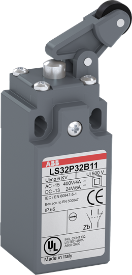 Der LS33P32B11 ist ein 30 mm breiter Positionsschalter aus glasfaserverstärktem UL-V0-Material, mit 2 Befestigungsbohrungen oben,1 1/2 Zoll NPT Kabeleinführung unten, 1 abgeflachten Winkelhebel aus Kunststoff auf Stahl-Druckbolzen sowie 1 Schließer + 1 Öffner als Sprungkontakt