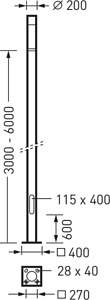 Standrohr des modularem, dekorativen LED-Lichtstelensystems CS 20. Mit angeschweißter Flanschplatte. Revisionstür mit 3-Kant-Verschluss 10 mm, Gerätesteg mit C-Profil mit 2 x M6 Schiebemutter und M8 Erdungsschraube. Farbe anthrazit, ähnlich DB703 mit Metalleffekt, hochwetterfest, pulverbeschichtet. Standrohrlänge 5040 mm, Außendurchmesser Ø 200 mm. Schutzart (DIN EN 60529): IP44. Weitere Farben sowie Anti-Graffiti-Beschichtung auf Anfrage.