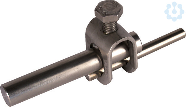 Stangenklemme nach DIN EN 62561-1, zum Verbinden von Fangstangen Rd 16 mm mit Rundleitern. Ausführung für der Anschluss längs oder quer.