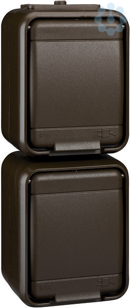 Steckdose 2-fach senkrecht, 16 A 250V AC. Farbe: licht-/basaltgrau, vorverdrahtet, für Aufputzmontage. Schutzart IP 44, mit zwei Leitungseinführungen, Steckklemmen: Klemmbereich für Kupferleiter 1,5 mm und 2,5 mm, Verbindungsklemmen nachVDE 0620.