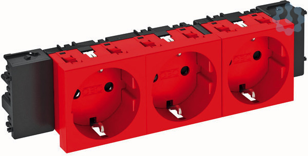 Steckdose 0°, 3-fach Schutzkontakt, Connect 45 250V, 10/16A, PC, signalrot,