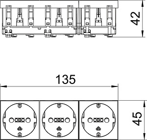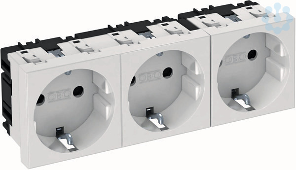 Schutzkontakt-Steckdose 3-fach 0°, mit erhöhtem Berührungsschutz, mit Steckklemmen, 2-polig, 16 A, 250 V~, mit Verbindungsklemmen nach IEC 60884-1.